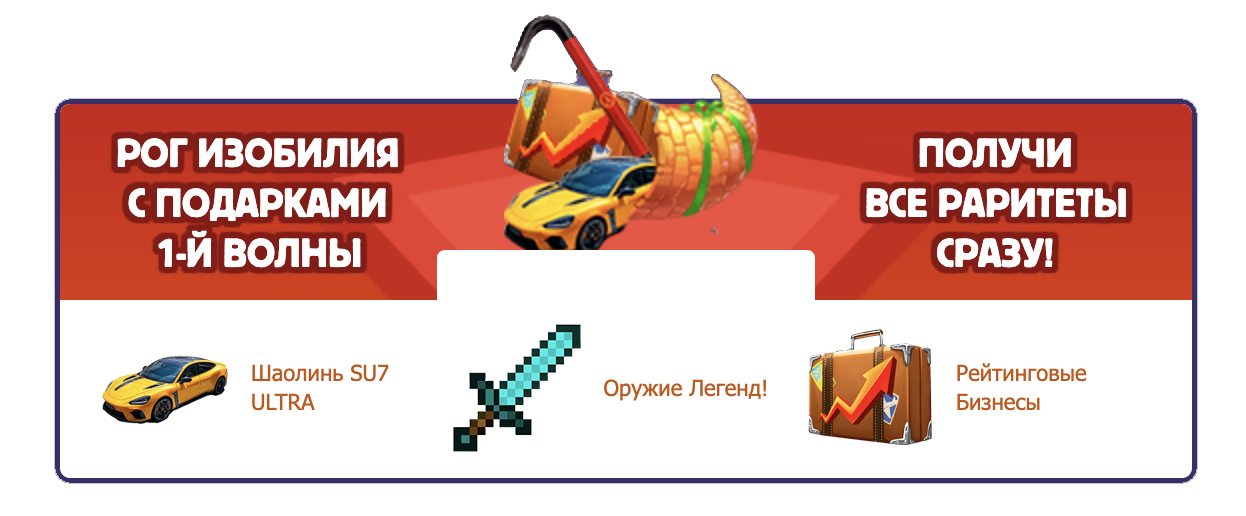 Рог изобилия — это предмет, который содержит в себе все раритеты текущей волны подарков сразу в максимальной модификации и является желанным призом для любого игрока!